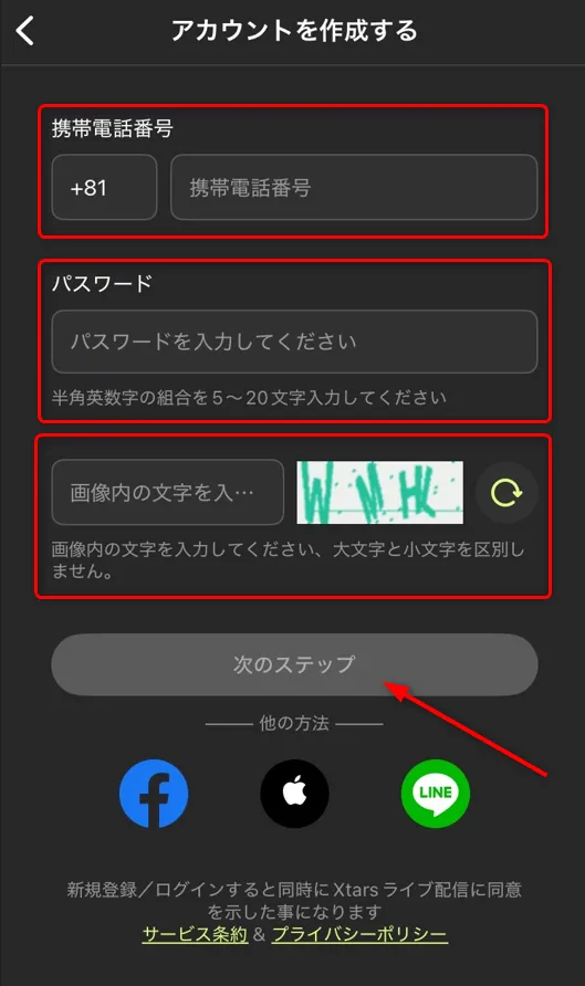 上記3点を入力完了したら「次のステップ」をタップして次の画面に進んでください。