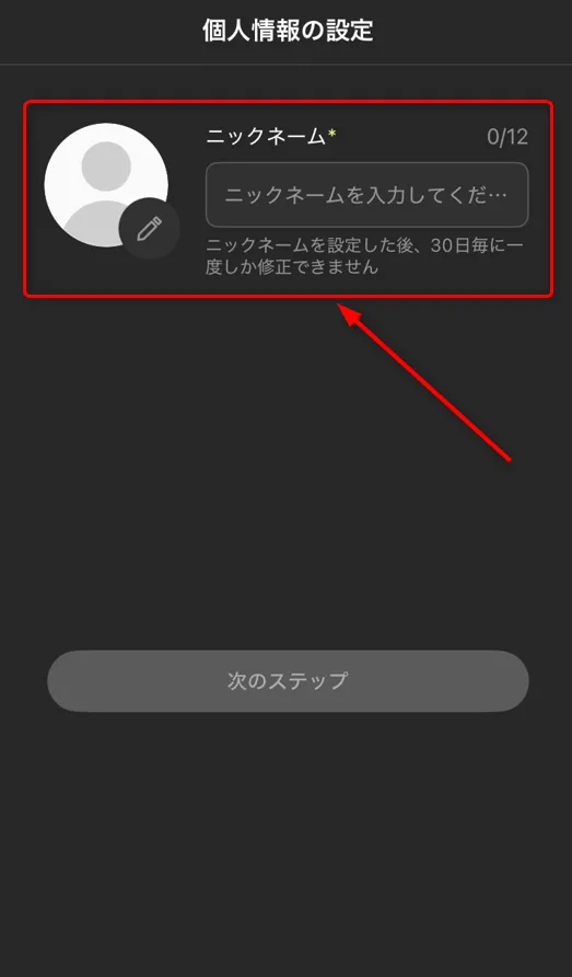 ※ニックネームは30日毎に一度変更可能